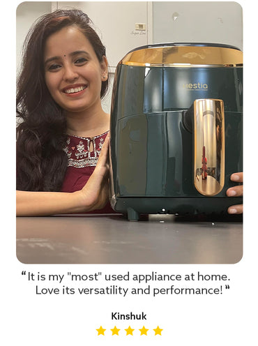 Cook what you love the healthy way with Hestia's Nutri-Wave Digital Airfryer which comes with specially designed Indian presets that work well with Indian food, and oil-free cooking that lets you relish the flavours without having to worry about the calories.