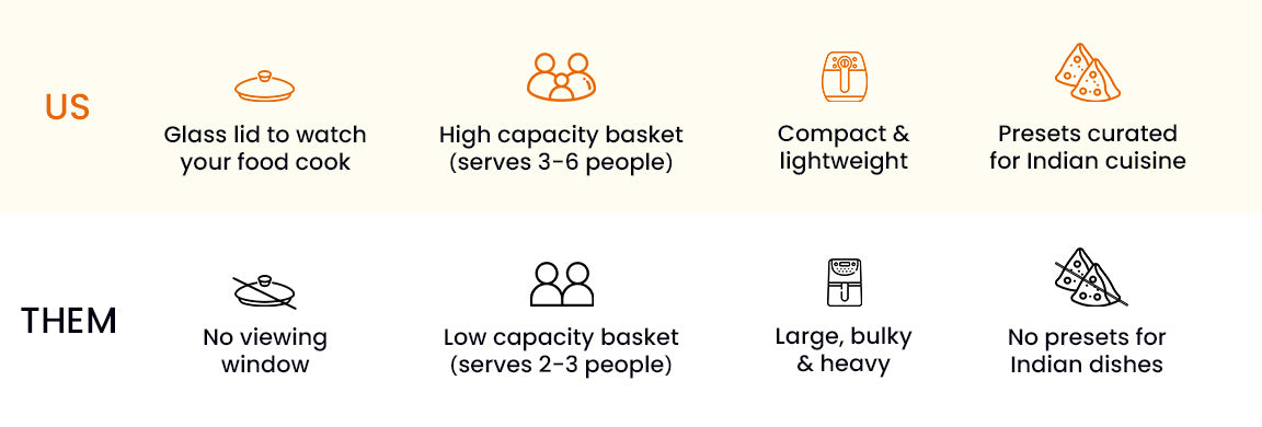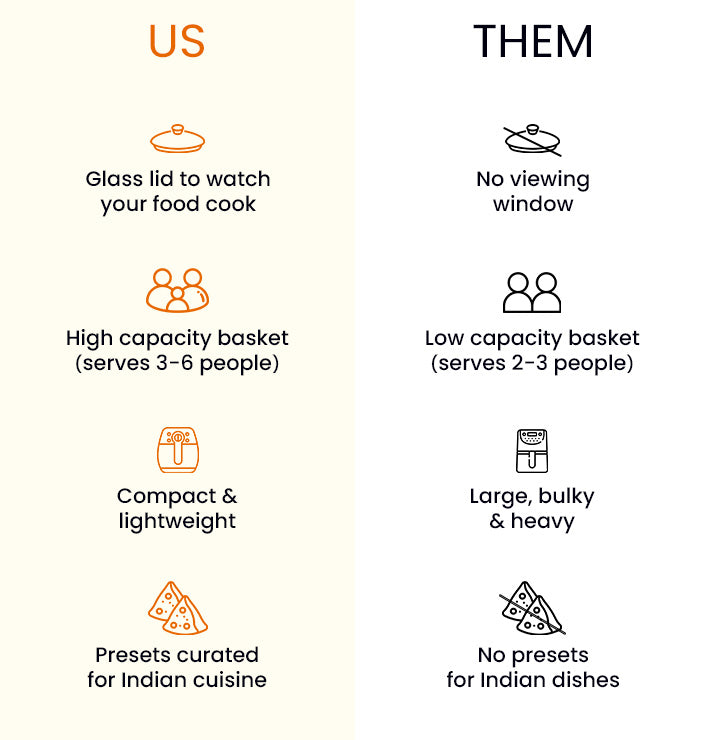 • Perfect for Indian food- Specially designed Indian presets that let you cook your favourite dishes the healthy way.